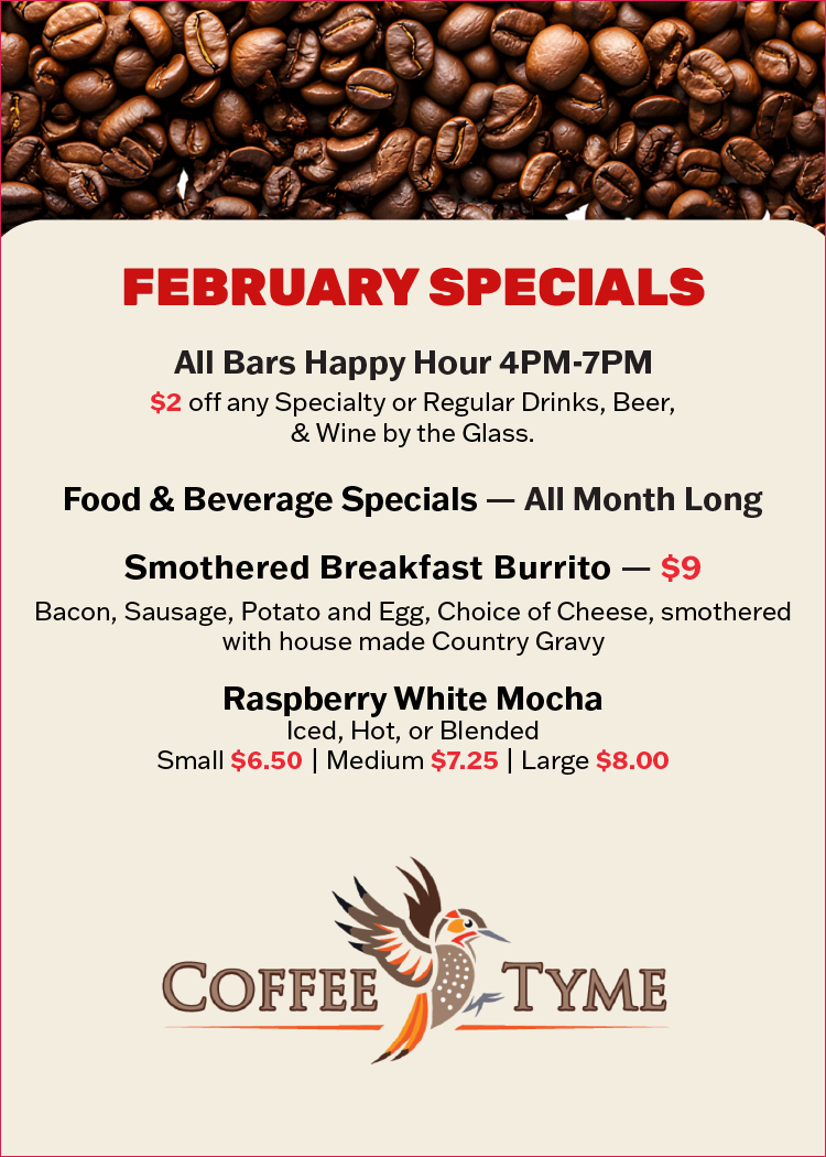 At the GCCR, it is ALWAYS Coffee Tyme! Stop by Coffee Tyme café from on the Casino Floor and enjoy your favorite hot and cold drinks, whipped up to perfection. Hungry but want to keep playing? You can have breakfast burritos, cheeseburgers, hotdogs, deli sandwiches and more — delivered right to your slot machine! OPEN 24 HOURS