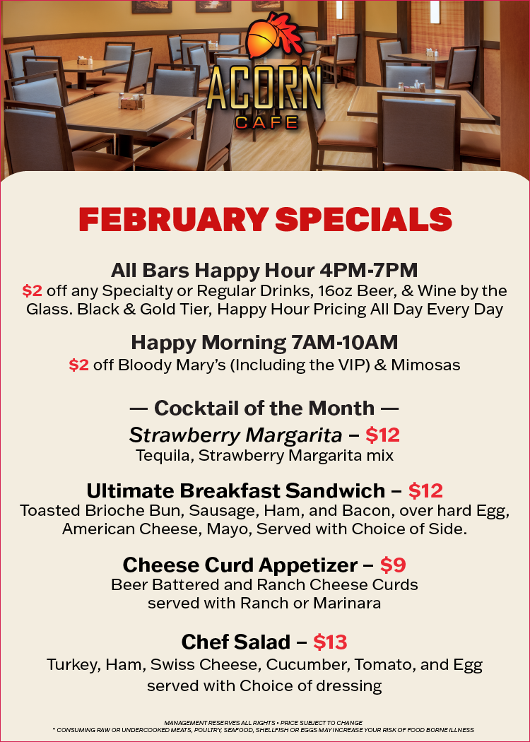 Welcome to the Acorn Café, where Storied Tradition meets Modern Comfort. We offer mouthwatering comfort classics and contemporary café delights – there is something for everyone to indulge their whims.