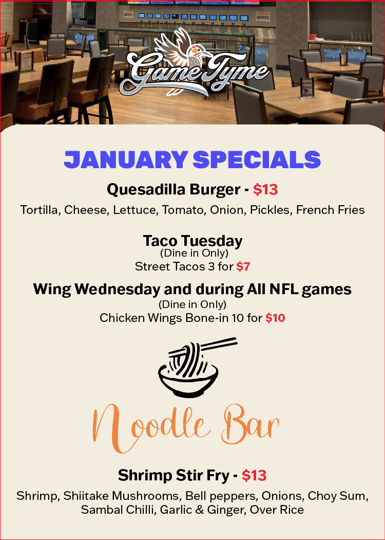 Welcome to the opening of our new restaurant at the GCCR! Head into Game Tyme and ask about our Noodle Bar and enjoy our variety of Asian food such as the Udon Noodles, Wonton Soup, Pho, and much more!